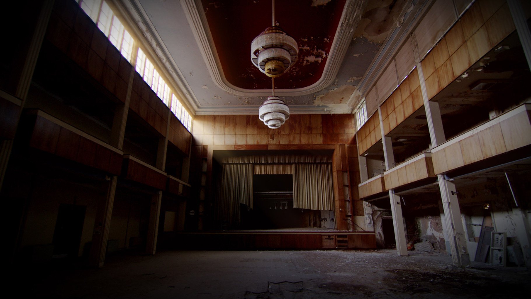 In the depths of an abandoned hydroelectric powerplant stands a model.