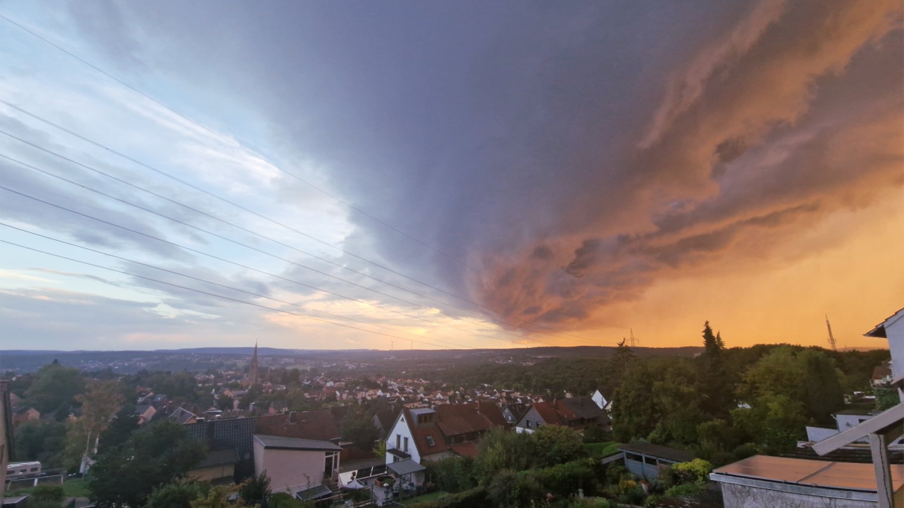 A storm is approaching Saarbrücken from the west. The photo was taken into southern direction on 28 August 2025. The bad whether probably hit the E-Werk 2 minutes after that photo was taken.
