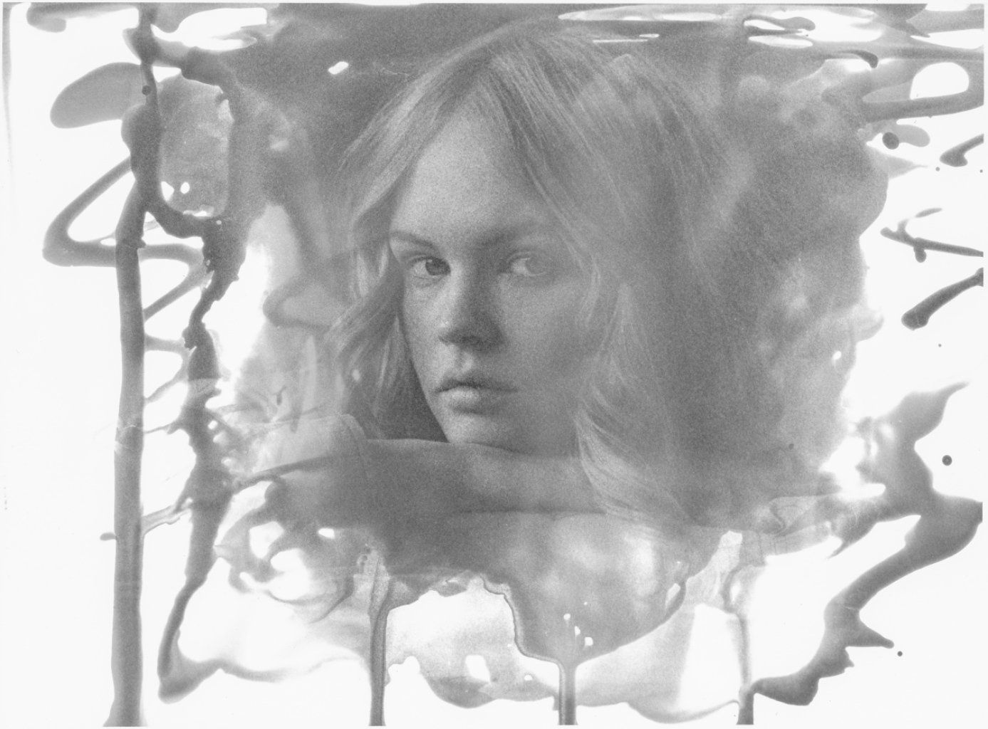 Canon EOS1n with Kodak P3200 pulled to ISO800, developed in Rodinal 1+100, projected on Fomapaper (hardgrade 4) and handdeveloped with paperdeveloper and a paint brush. Stopped and Fixed. Long live analogue